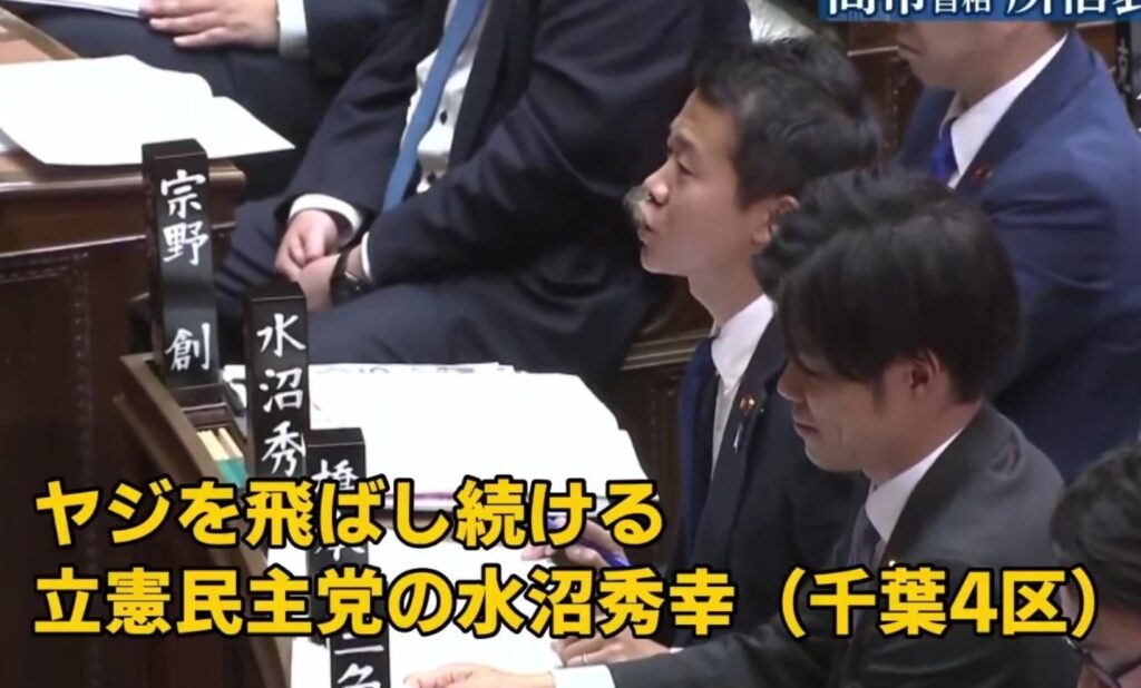 水沼秀幸議員が繰り返し大きなヤジを飛ばしたとして批判を受けました。