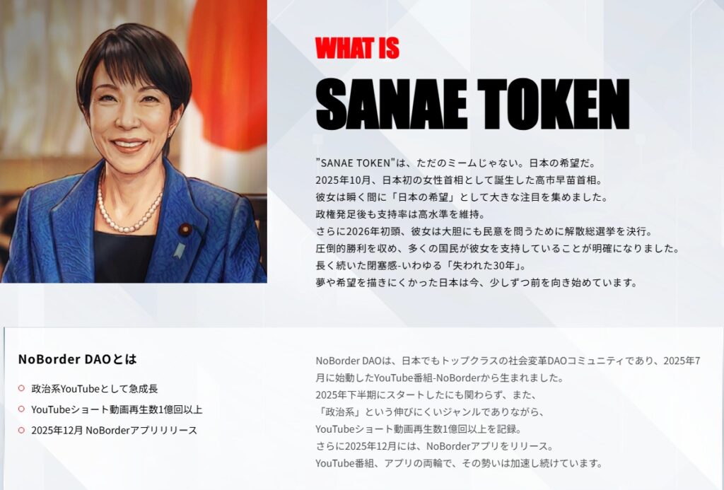 サナエトークンは、2026年2月25日に**NoBorder DAO**が発行したコミュニティトークンです。